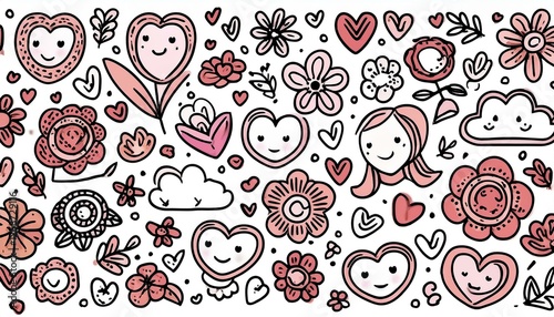 Cute kid icon element line flower, cloud, heart background. Hand drawn doodle cute cartoon scribble sticker element set. Flower, heart, cloud children elements background. perfect any project.