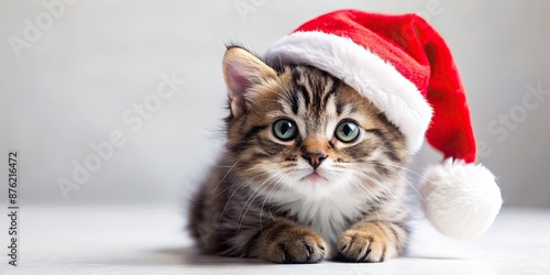 kitten, hat, christmas, santa, festive, adorable, pet, furry, holiday, animal, cute, winter, red, white, fluffy, small, celebration, fun, cheerful, seasonal, felino, whimsical, joyful, december