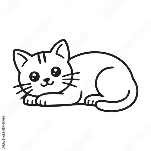 Cute Line Art of a Lying Cat – Black and White Vector Illustration
