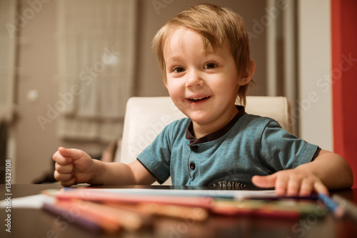 children, colours, desk, boy, paint, crayons, childhood, paper, creativity, cute, education, enjoyment, learning, male, one person, photo, playful, intelligence, indoor, development, beauty, sitting, colouring, activity, fun, hobby, closeup, copy space