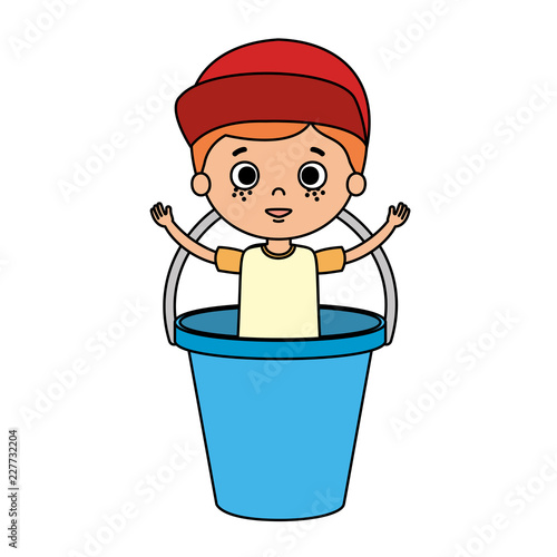 cute little boy in sand bucket