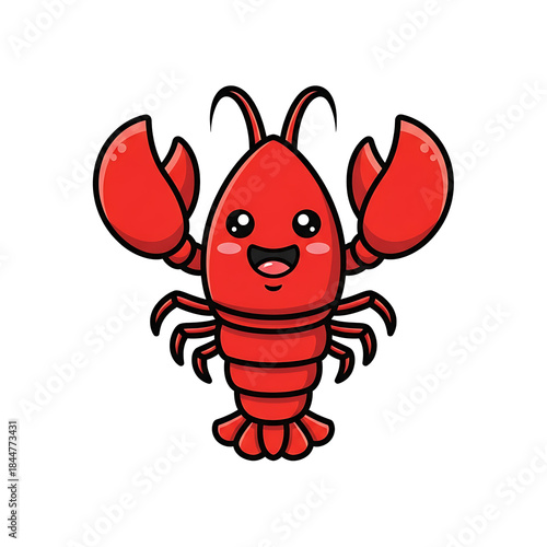 lobster, crustacean, seafood, cartoon, cute, smiling, happy, red, marine animal, animal, marin, seafood, icon, mascot, character, illustration, graphic, clip art, design, vector, underwater, ocean, sea, food, eatery, cooked, isolated, black background, funny