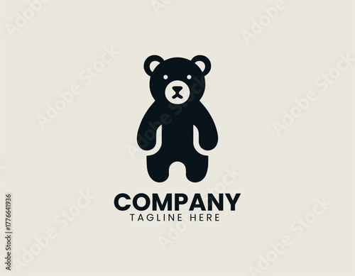 Cute minimalist teddy bear silhouette vector logo illustration for kids, toys, or children's brand. Simple mascot design