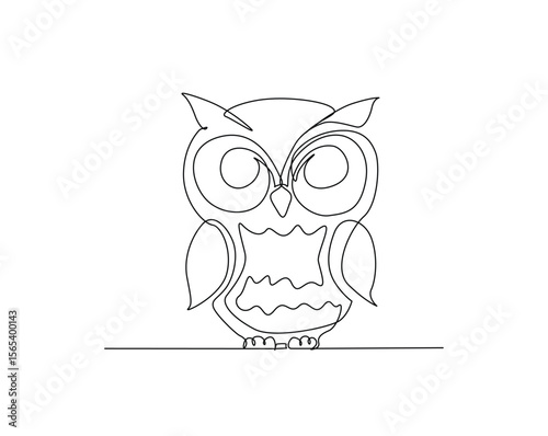 Cute owl bird outline illustration. Continuous line drawing of owl.