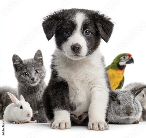 pet, animal, dog, puppy, cat, kitten, rabbit, bird, parrot, group, cute, fluffy, together, adorable, playful, friendly, companionship, domestic, mammal, wildlife, petting, care, health, love, family, home, companion, support, nurture, caretaker, bonding, kind, happy