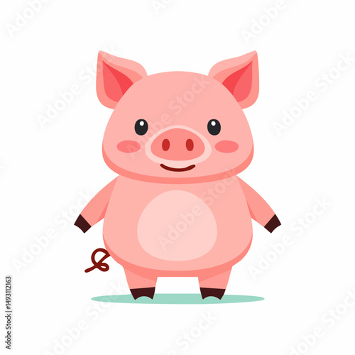 Cute Pig in Simple Vector Style – Minimalist Farm Animal Cartoon on White Background