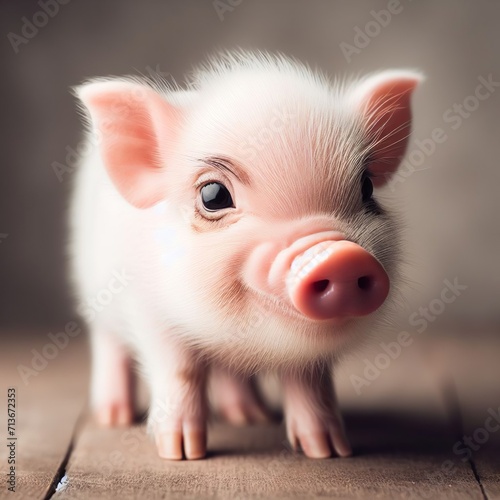 Cute pig on wooden background, vintage style.