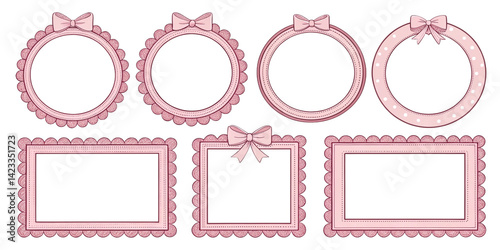 Cute Pink Frames with Bows for Photo Display and Scrapbooking