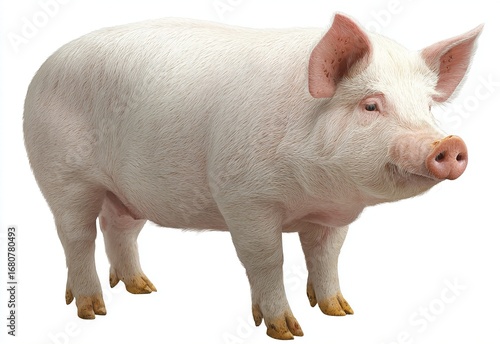Cute Pink Pig Standing Isolated on White Background