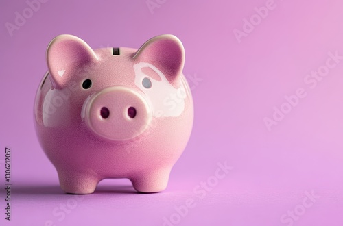 Cute Pink Piggy Bank on a Soft Purple Background for Savings, Finances, and Budgeting Concepts in a Minimalist Style