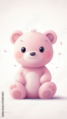 cute, pink, teddy, bear, to sit, smile, soft, adorable, plush, toy, scene, playful, paint, happy, youth, theme, comfort, children, draw, cheerful, print, style, room, friendship, peaceful