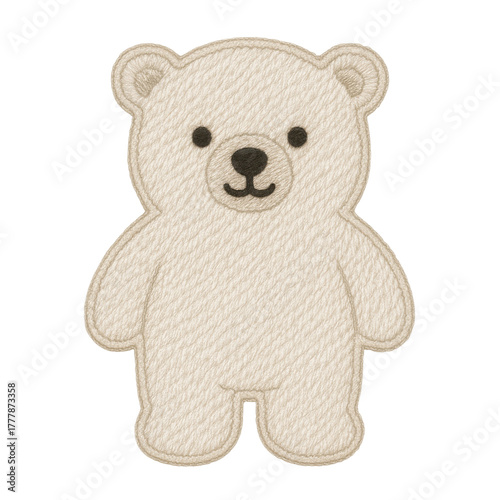 polar bear, embroidered, patch, cute, animal, badge, winter, texture, soft, christmas, embroidery, stitching, thread, fabric, textile, craft, hand-made, fur, woven, needlecraft, sewing, adorable, charming, friendly, smiling, simple, minimal, icon, illustration, graphic, design element, isolated, off-white, cream, white, holiday, season, cold, decoration, baby, children, childcare center, scrapbook, art, symbol, toy, character