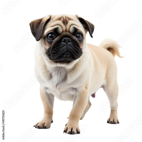 pug, dog, animal, pet, puppy, canino, breed, purebred, adorable, cute, portrait, small, domestic, fawn, wrinkly, studio, looking, white background, funny, face, isolated, mammal, brown, wrinkled, small dog, pedigree, animal portrait, pet, one animal, innocence, front view, standing, short hair, beige, tan, paw, compact, studio shot