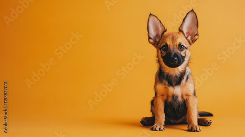 puppy, cute, ear, large, vibrant, yellow, background, sitting, pet, animal, dog, adorable, companion, playful, young, breed, lovely, fluffy, furry, friends, joy, happiness, expression, indoor, portrait, space, copy, blank, cheerful, small, tail, resting, curious, innocence, zoom, colours, canino, delightful, affectionate, fun, happy, domestic, studio, natural, friends, warmth, youth