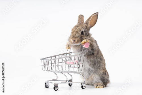 rabbit, rabbit, animal, pet, cart, shopping, basket, purchase, streetcar, white, background, adorable, baby, brown, buy, buyer, consumer, client, cute, domestic, ear, easter, empty, explore, find, farm, fluffy, food, fur, furry, grocery, hare, isolated, little, looking, mammal, market, pretty, product, pushing, retail, rodent, small, store, studio, supermarket, wild, wildlife, young