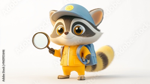 background, education, raccoon, mascot, artwork, discovery, playful, backpack, animal, funny, friendly, art, learning, glasses, render, design, isolated, graphic, character, white, happy, magnifying, school, cute, science, three-dimensional, cartoon, explorer, hat, illustration, hiker, cowboy, holiday maker, camping, people, camper, business, traveler, person, safari, fun, vector, sheriff