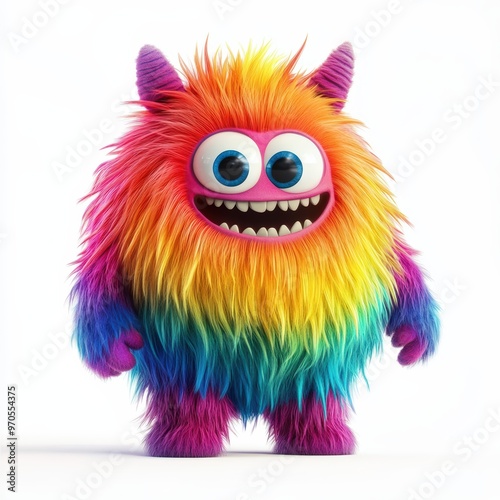 Cute rainbow furry monster 3D cartoon character