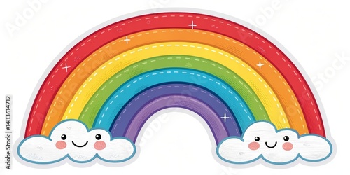 rainbow, illustration, cute, happy, cloud, art, digital, graphic, colourful, whimsical, childlike, playful, sunny, vibrant, bright, sunshine, dreamy, magical, fantasy, joyful, children, children, cartoon, sweet, pastel, sky, arc, smile, friendly, adorable, lovely, pretty, fun, delight, positive, optimistic, uplifting, imagination, creativity, design, artwork, drawing, painted, image, picture, element, background, wallpaper