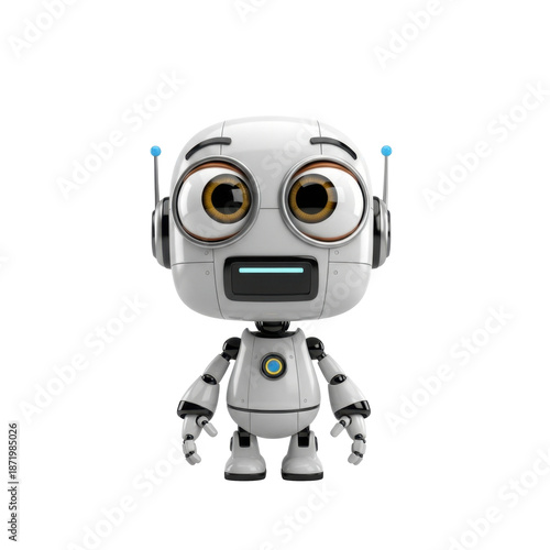 isolated, robot, cute, character, three-dimensional, artificial intelligence, ai, friendly, cartoon, metal, futuristic, automation, technology, design, digital artwork, robotic, droid, toy, machine, big eye, white, rendering, illustration, mascot, electronic, modern, innovation, cheerful, adorable, science fiction, science fiction, android, digital