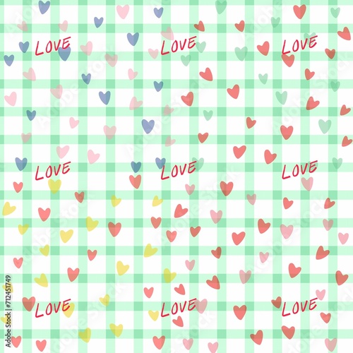 Cute seamless pattern with colorful hearts. Valentine's Day. Seamless pattern with hearts and ribbons on a white background.