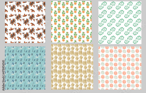 Cute Set of Seamless Patterns Design, Abstract and Floral Design