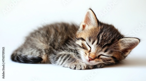 Cute sleeping kitten with striped fur.