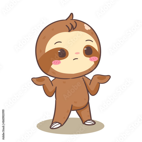Cute Sloth Confused Cartoon Character. Adorable and Kawaii Animal Concept Design. Icon Mascot Vector Illustration