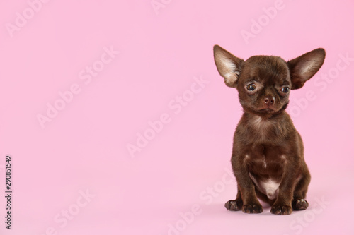 Cute small Chihuahua dog on pink background. Space for text