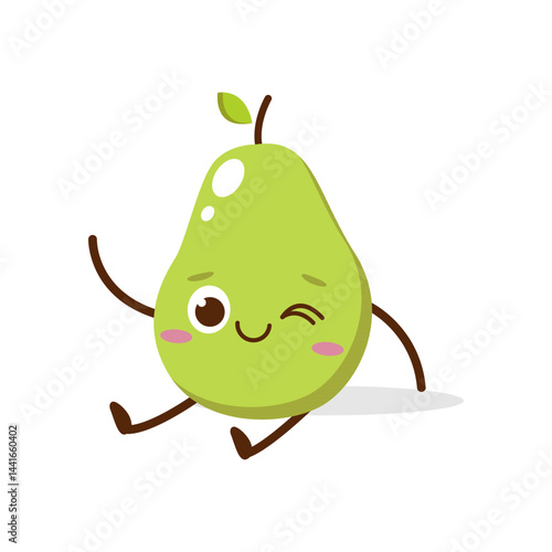 Cute Smiling Green Avocado Character. Kawaii Green Fruit Mascot Style Vector. Cute vector character set in various action emotions. Collection symbols isolated on a white background