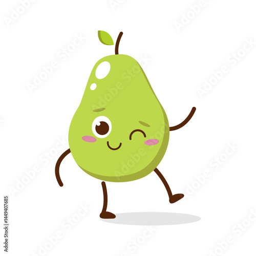 Cute Smiling Green Avocado Character. Kawaii Green Fruit Mascot Style Vector. Cute vector character set in various action emotions. Collection symbols isolated on a white background