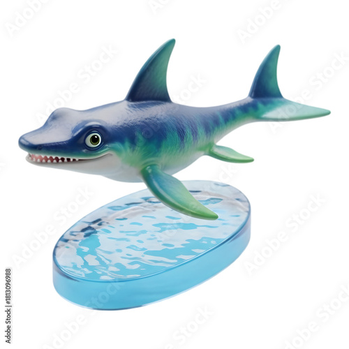 shark, figurine, statue, toy, cute, cartoon, stylised, character, animal, ocean, sea, water, wave, blue, green, vibrant, marin, aquatic, predator, fish, jaw, teeth, smile, eye, three-dimensional, render, model, illustration, sculpture, collectable, smooth, glossy, black, background, studio, creature, tropical, fantasy, fun, playful, oceanic, footed, racked, swim, diving, clear, happy