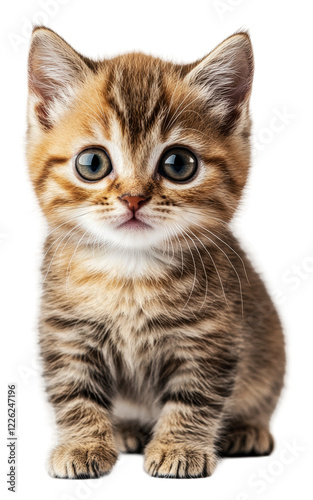 Cute tabby kitten with big eyes in studio setting isolated on transparent background