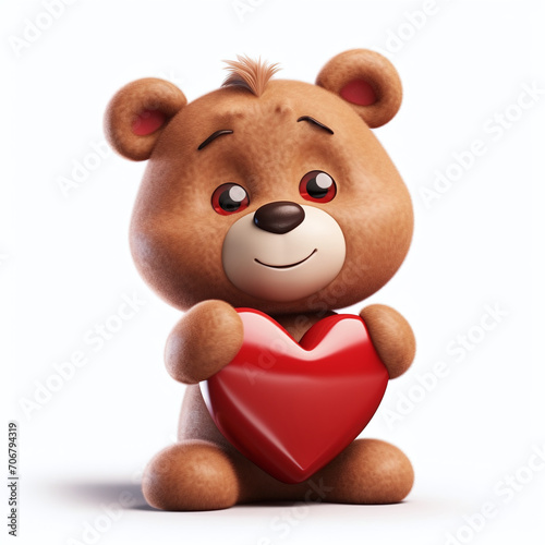 Cute teddy bear with a big red heart. Romantic gift for Valentine's Day or a love greeting