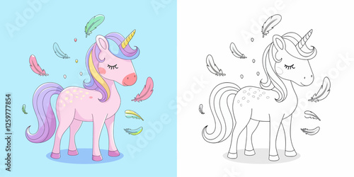 unicorn, printable, children, children, activity, education, preschool, kindergarten, toddler, drawing, fantasy, cute, cartoon, illustration, fairy tale, pastel, pink, purple, yellow, green, blue, feather, magical, whimsical, peaceful, print, download, art supply, craft, vector graphics, children's book, creative, fun