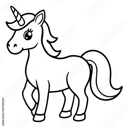 Cute Unicorn Silhouette Line Art Black Vector Carton Illustration