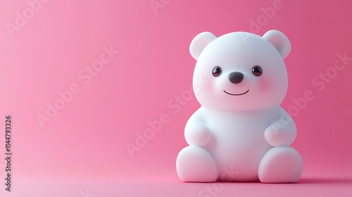 Cute white 3D bear on pink background.