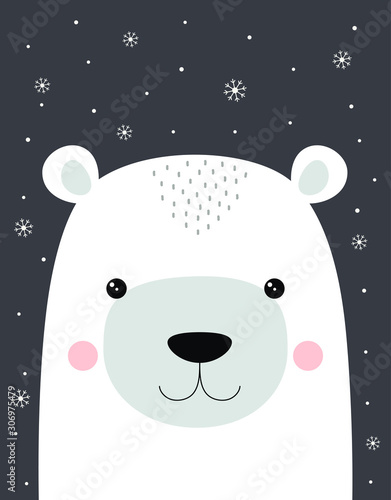 december, happiness, teddy, holiday, vector, christmas, cheerful, drawing, card, illustration, animal, bear, white, cute, winter, greeting, cartoon, art, hand, design, poster, snow, background, decoration, character, celebration, arctic, baby, polar, boy, girl, childish, happy, snowflake