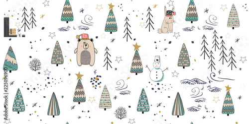 pattern, seamless, christmas, background, winter, decoration, design, holiday, tree, wallpaper, fabric, fir, forest, graphic, pine, season, vector, cute, ornament, card, decorative, happy, illustration, new year, night, repeat, textile, christmas, snow, art, cartoon, merry, scandinavian, snowflake, symbol, wood, new, year, element, star, drawn, gift, hand, paper, 2019, texture, abstract, berry, cold