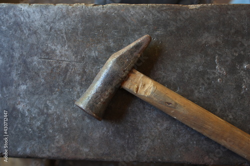 Cutlery hammer on an anvil.