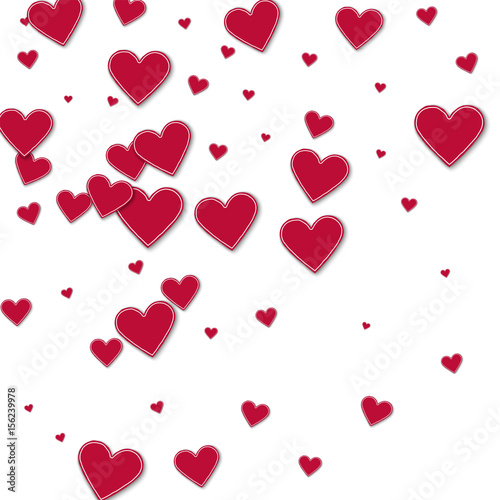 Cutout red paper hearts. Abstract scatter on white background. Vector illustration.