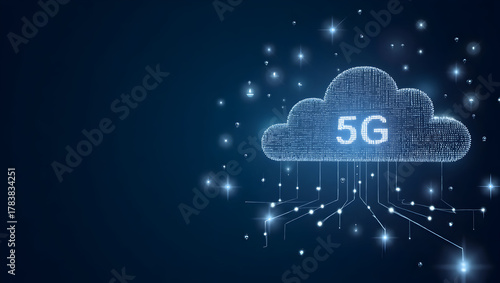 Cutting edge 5G cloud networking architecture delivering integrated cloud services ultra responsive connectivity and real time analytics for modern digital enterprises. in Photo Stock Concept and e
