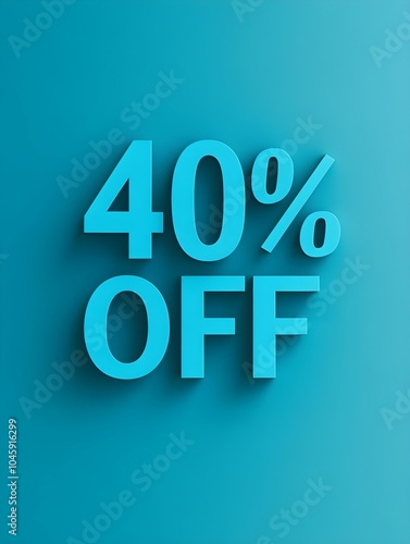 Cyan '40% OFF' Promotional Sign on a Cyan Background