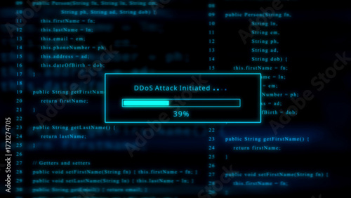 Cyber attack D Do S initiated progress bar loading on digital code background ddos