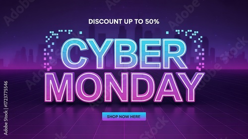 cyber, monday, sale, discount, offer, deal, shopping, online, e-business, retail, promotion, advertisement, banner, purple, city landscape, skyline, text, typography, graphic, design, art, celebration, event, seasonal, holiday, business, commerce, consumer, client, buyer, purchase, bargain, save, money, percent