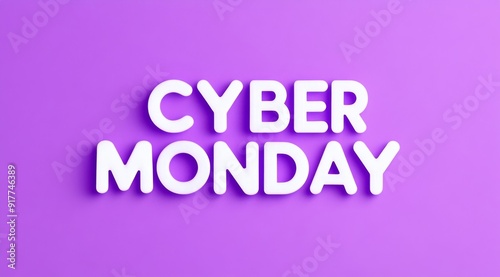 Cyber Monday sale promotions featuring bold text on a vibrant purple background
