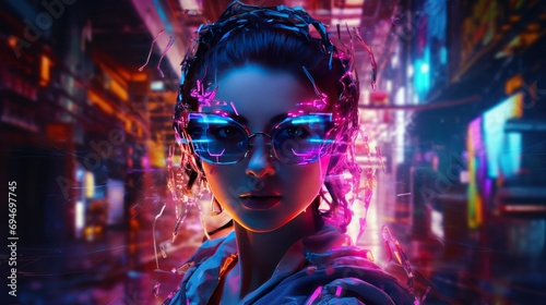 woman, modern, neon, style, girl, background, goggles, science fiction, science fiction, future, artificial intelligence, futuristic, stylish, people, reality, cyborg, robot, model, young, fashion, female, portrait, cyber, trendy, face, digital, technology, beautiful, light, fantasy, lifestyle, colours, looking, cool, ai, generative