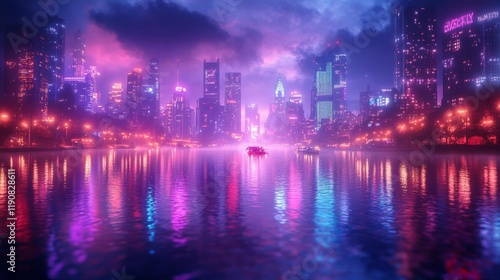 city landscape, neon, night, light, reflections, futuristic, purple, blue, glow, moody, vibrant, atmosphere, urban, skyline, fog, cinematic, science fiction, modern, aesthetic, design, technology, building, architecture, street, surreal, energy, colourful, city, fantasy, wet, ground, illumination, creative, traffic, nightlife, metropolis, dreamlike, visual, glowing, abstract, electric, art, innovation