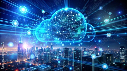 cyberspace, technology, cyber, digital, cloud, communication, design, graphic, network, security. image of digital transformation for the next generation is ready to face tomorrow via ai generated.