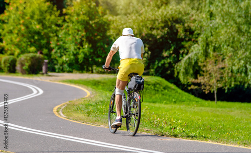 Cyclist ride on the bike path in the city Park
