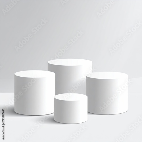 Cylindrical, white platform stages, varying heights, simple